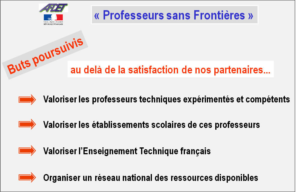 L’AFDET vous met en relation avec des professeurs techniques motivés, compétents, volontaires,